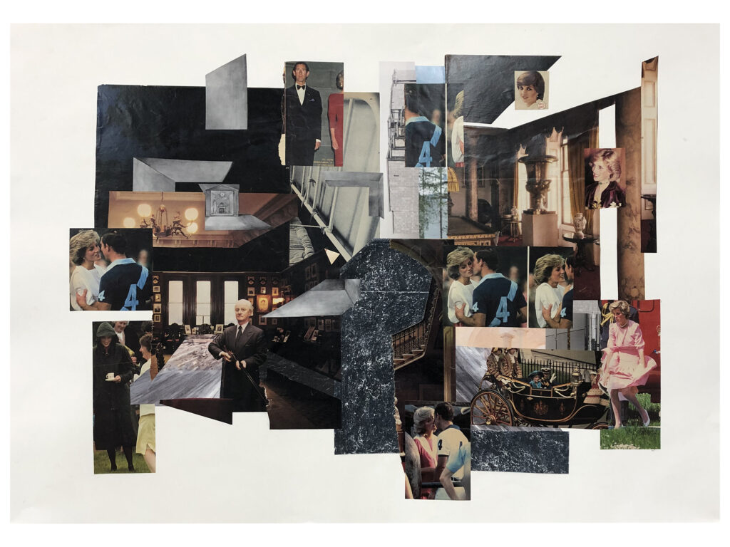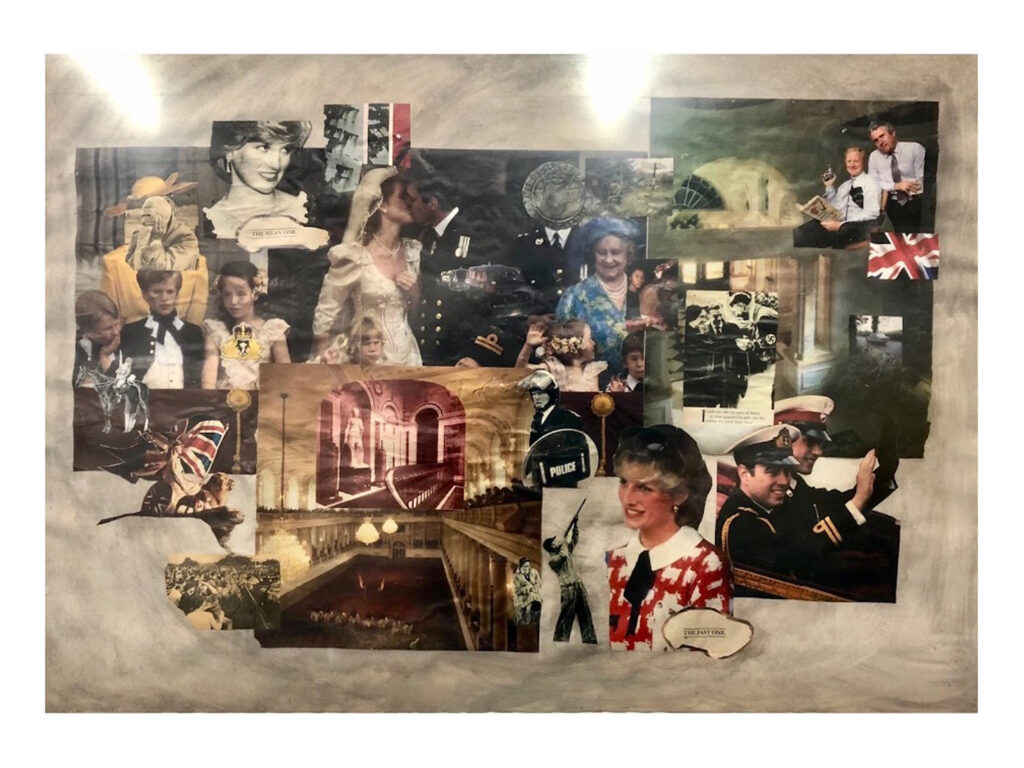 Two A1 collages exploring the Royal Family, Princess Diana, the aristocracy and British culture. The imagery depicts the bizarre opulence and pomp of the monarchy that continues into the the present day (both idolised and criticised), the contradicting nature of Diana’s role, and references to the violence that the historical system of power has always relied on to survive. Whether that be the violent policing of the British royal subjects, or the colonial violence inflicted on other nations in the name of the empire.